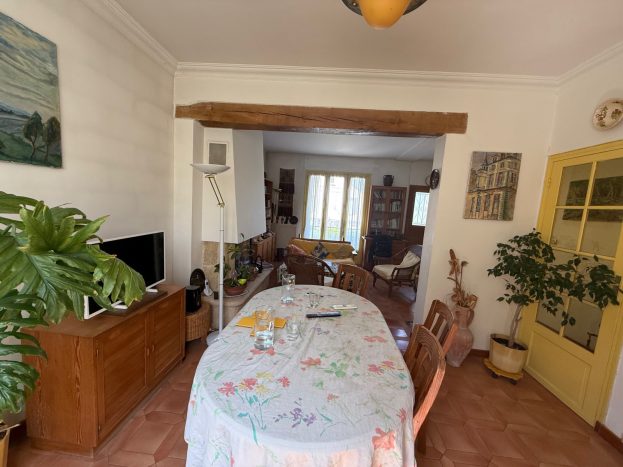 Belle maison spacieuse de 6 pièces de 125 m². Elle offre au niveau 1 un séjour ouvert sur la cuisine équipée et aménagée, une chambre, un WC avec lave-main. A l’étage elle comporte 3 chambres dont une avec placard intégré, un dressing, une salle de bain avec WC. Au sous-sol, un studio avec son coin cuisine et sa salle d’eau. Une cave à vin. A cela s’ajoute un beau jardin sans vis à vis de 430 m² et un garage.